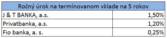 Pri viazanosti na 5 rokov sú len 3 banky, ktoré ponúkajú termínované vklady na toto obdobie, takže som vybral všetko, čo som našiel.